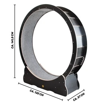 Bereits seit 2016 fertigt CanadianCat® Laufräder für Katzen. Hier präsentieren wir Ihnen den neusten Bausatz „Cat in Motion 2.0“ aus hochwertigem Multiplex-Holz. Die Laufflächen bestehen aus strapazierfähigem Teppichboden. Dieser wird mit starkem Klettverband an der inneren Radlauf-Seite befestigt. So kann der Laufteppich auch wieder abgenommen und gereinigt werden. Damit bleibt das Laufrad immer hygienisch und sauber. Dieses Laufrad ist das ideale Trainings- und Fitnessgerät für alle Wohnungskatzen aber auch für Freigänger.