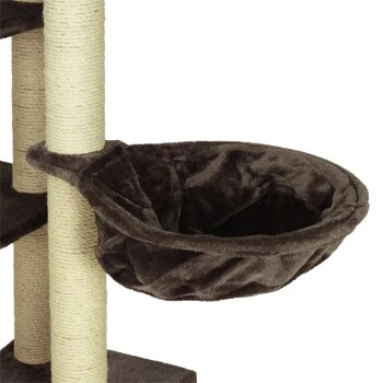 Der deckenhohe Kratzbaum Madrid ist in der Höhe von 245 bis 270 cm verstellbar. Eine komplett mit Fleece ausgestattete Höhle, vier mit Plüsch bezogene Liegeplatten, zwei Liegemulden, eine Spielrolle und hohe, mit Natursisal umwickelte Stämme sorgen für viel Abwechslung.